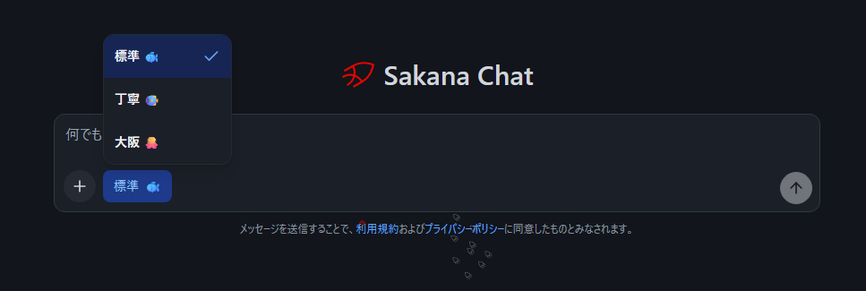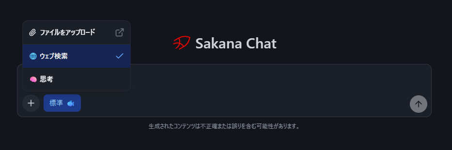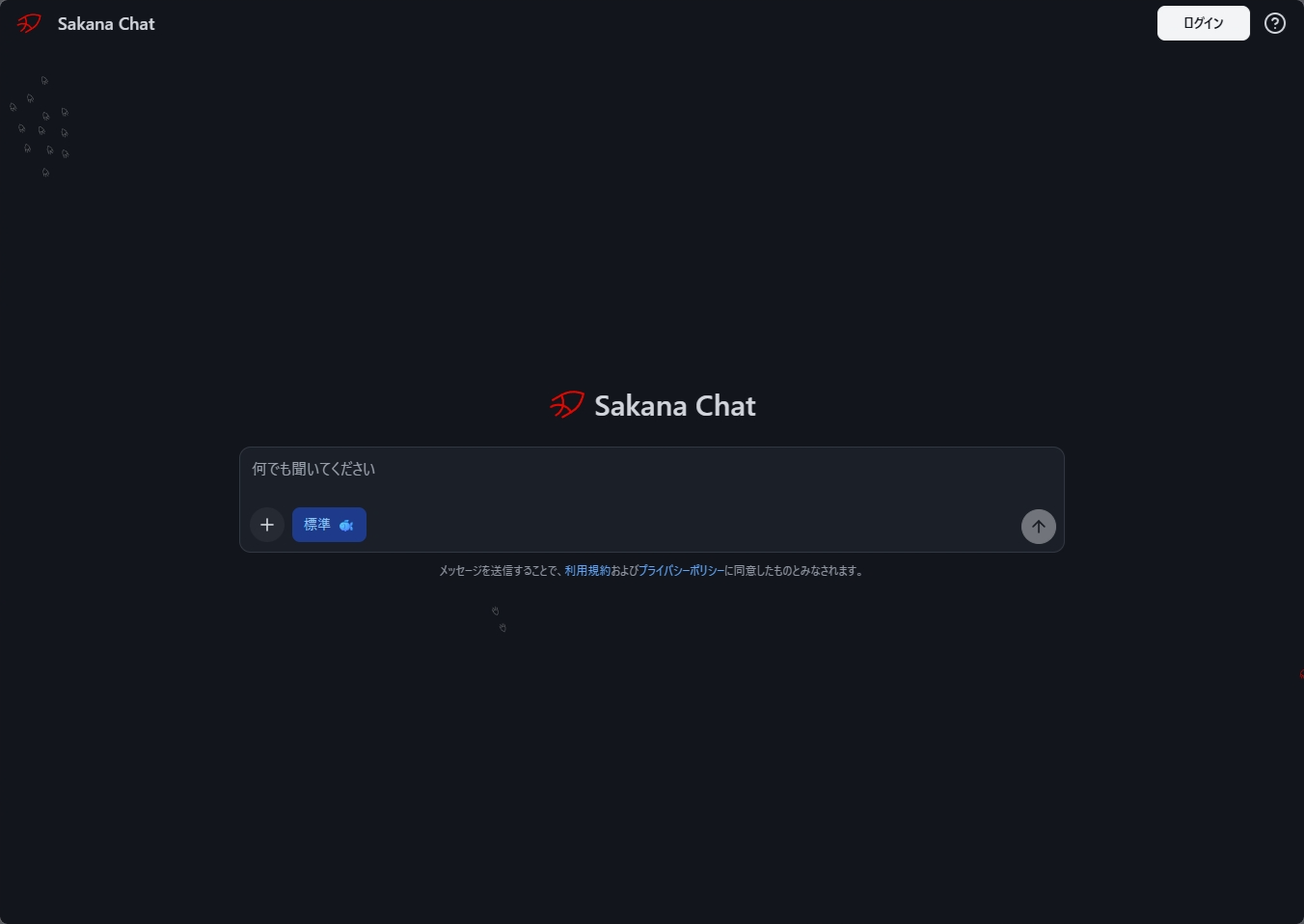 Sakana Chatは、Sakana AIが開発した日本特化型LLM「Namazu(α版)」を搭載したWebベースのAIチャットサービスである。主な機能は以下のとおり。