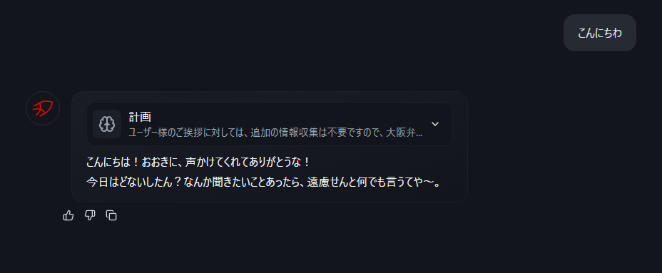 - 話し方モードの選択:「標準」「丁寧」「大阪」の3つの応答スタイルから選択可能